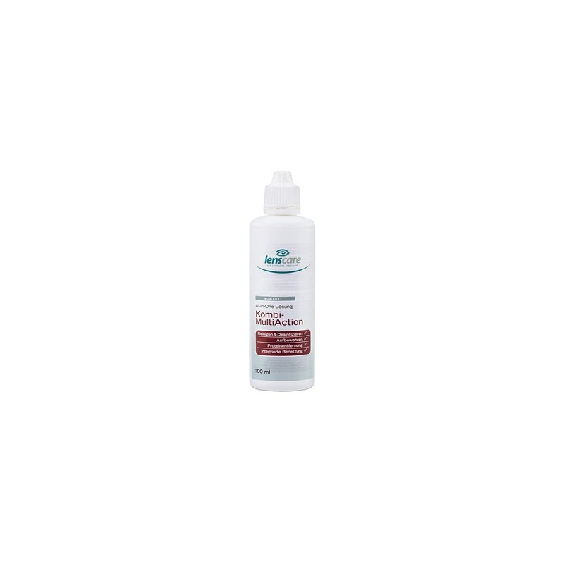 As a real all-round talent, the combination MultiAction from Lenscare offers everything you need for a comprehensive cleaning of your soft contact lenses. The all-in-one solution covers cleaning, disinfecting, storage and rinsing of contact lenses. In addition, the Kombi-MultiAction contains a protein removal agent as well as a wetting agent that increases the wearing comfort and the spontaneous compatibility of your contact lenses.