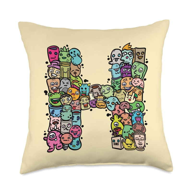 Letter H Monsters Alphabet Name Initial Cute Monogrammed Throw Pillow