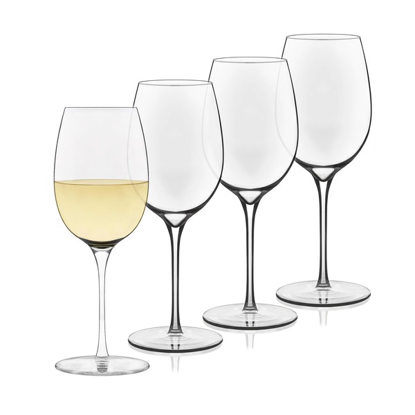 - Easy-to-hold and swirl set of four 13.25-ounce white wine glasses — perfect for Chardonnay, Sauvignon Blanc, Pinot Grigio, Riesling, and more