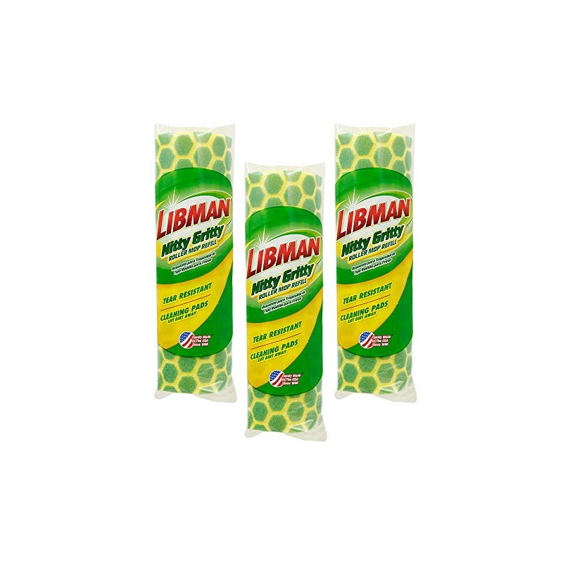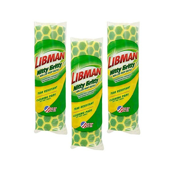 - INCLUDES 3 REFILLS: Includes three Libman Nitty Gritty Roller Mop head refills; single refill dimension (10 x 3.25 x 2.75); replace every 6 months or sooner with frequent use; Family Made in USA