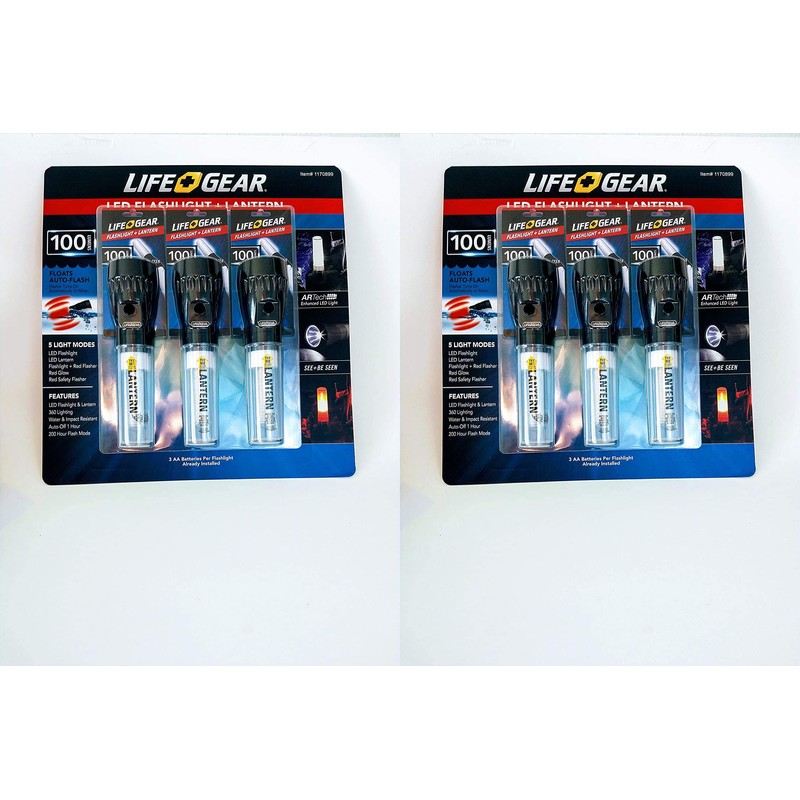Life Gear LED Flashlight + Lantern 3 Pack 100 Lumens 2 Set (6 Pack)