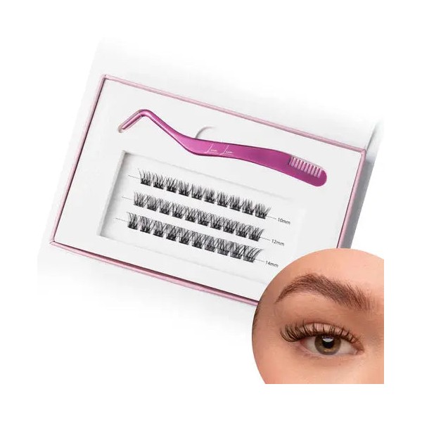 The Lina Lien Press Lash Starterkit Elegance Clear Glue Strip is your go-to for a refined lash look in seconds! Thanks to the clear glue strip technology, you don’t need any glue or remover. The pre-glued clusters are super easy to apply underneath your natural lashes, giving you an instant elegant lash extension look.