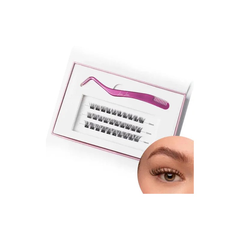 • Grab a cluster with the applicator and place it underneath your natural lashes for a beautiful extension look.