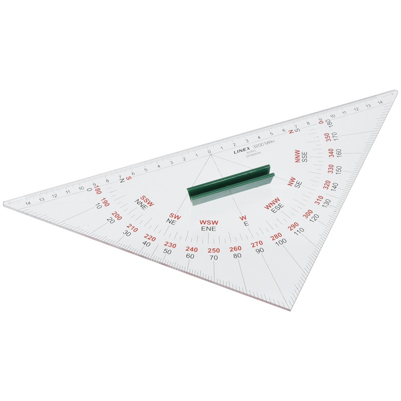 - Nautical protractor with vertical edge and comfortable plastic handle. Hypothenuse: 320 mm, cathet: 225 mm