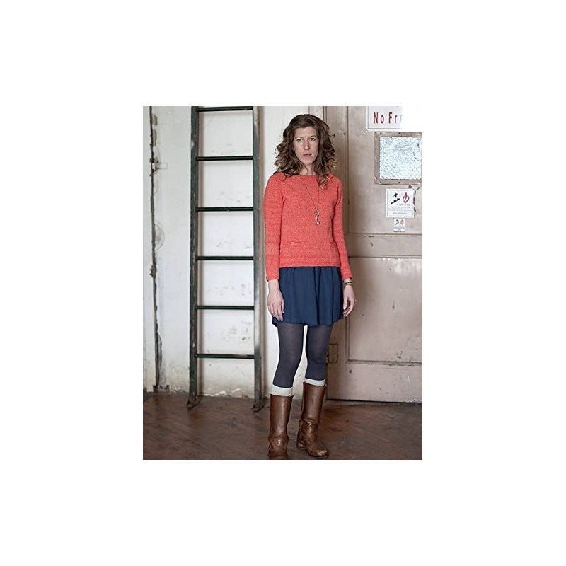 FINISHED SIZE 32 (35¼, 38¾, 42, 45½, 48¾, 52¼, 55½)†bust circumference. Garment shown measures 35¼â€ YARN O-WOOL BALANCE (50% certified organic merino, 50% certified organic cotton; 130yds/120 m 50/1.75 oz); 7 (8, 9, 9, 10, 11, 11, 12) skeins, shown in 4001 Cinnabar. GAUGE 19 sts and 30 rows = 4†in Stockinette Stitch. Take time to save time, check your gauge. NEEDLES Size 6 (4 mm): 24†circular (cir) and double-pointed (dpn). Adjust needle sizes if necessary to obtain the correct gauge. NOTIONS Stitch markers, stitch holders or waste yarn, tapestry needle, two 5/8†buttons (for pockets), one 1†button (for neck).