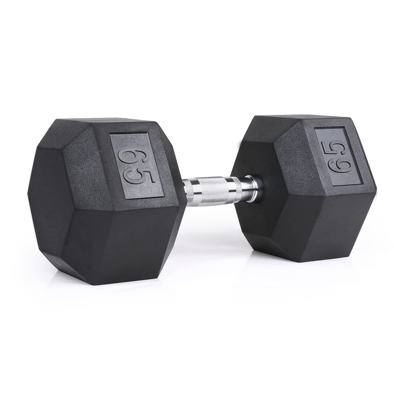 - Design Matters: The heavy-duty, rubber-encased hex heads prevent rolling, minimize noise and limit wear and tear (to both the dumbbells and your flooring), while the chrome-plated handle is ergonomically designed for a firm but comfortable feel in any grip style.
