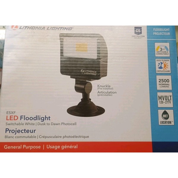 The Lithonia Lighting LED Floodlight Esxf 2500 is a high-quality outdoor lighting solution designed for security and illumination purposes. With a sensor type of light, this floodlight automatically activates when it detects darkness or low-light conditions, providing added safety and visibility in your yard or garden. The LED lighting technology ensures energy efficiency and bright, long-lasting illumination, making it a reliable choice for outdoor spaces.