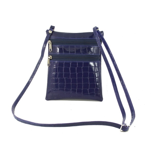 - Funky kleine flache Schulter- / Umhängetasche mit Reißverschluss aus Schlangenlederimitat-Krokodil