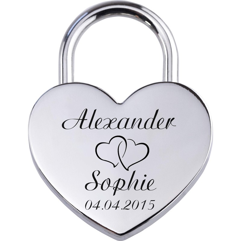 - A generous Love Lock comes in a heart shape in silver with double-sided Laser Engraving