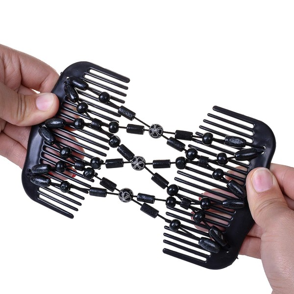 LOVEF Women Magic Hair Combs Wood Beaded Stretch Double Side Combs Clips Bun Maker Hair Accessories (Bead Back)