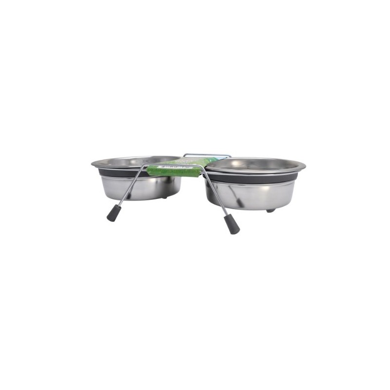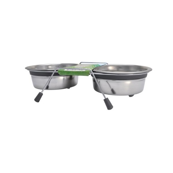 Loving Pets Silent Double Diner Pet Bowl, 2-Quart, Grey