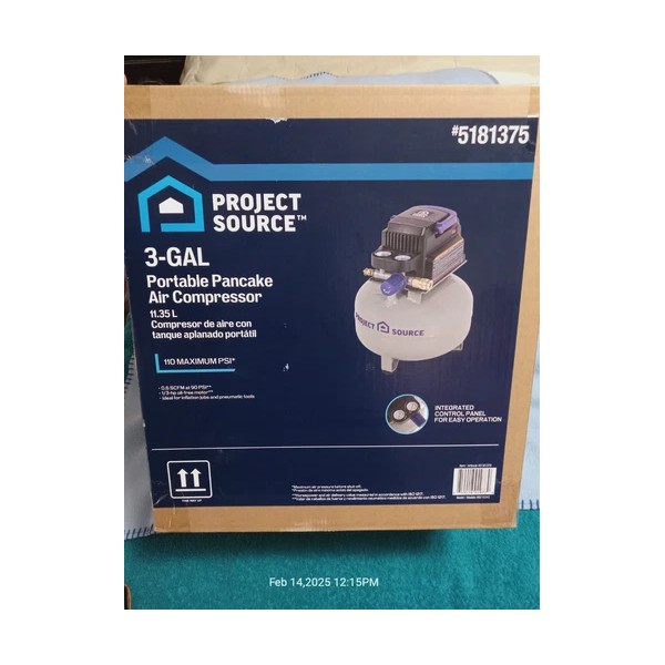 LOWES - PROJECT SOURCE Project Source 3-Gallons Portable 110 PSI Pancake Air Compressor - NEW
