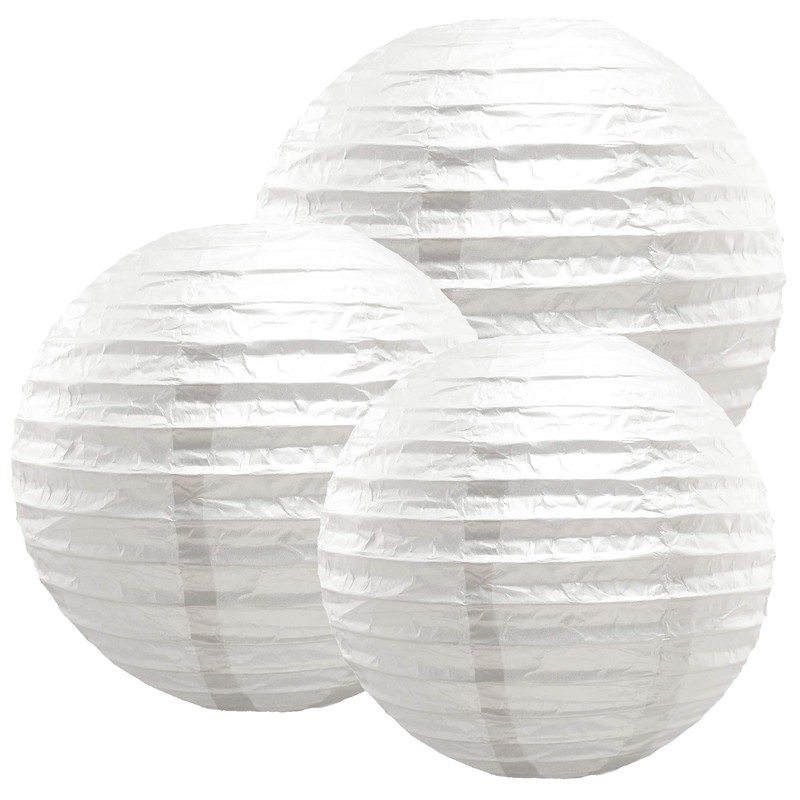 These classic white paper lanterns in multi sizes provide many options for decorating. Hang separately or cluster together for a bold and festive effect. These hanging round paper lanterns can be used for festivals, parties, weddings or decorations in the home and patio. Hang the paper hanging lanterns between branches allowing the lanterns to sway gently in the wind or at the entrance of your party, on string lights (not included) above your dining area or dinner table, under a party tent, under a ceiling at an event, under the roof overhang or under your patio umbrella. White paper lanterns offer a sophisticated look with bold and bright colors that add a festive feel. Product Details: – Includes: 6 Paper Lanterns, 6 Expander Inserts – Size of paper lanterns – 2–12″, 2–14″, 2–16″ in diameter – Indoor or temporary outdoor use, lanterns are not weather resistant – Minimal assembly required – Includes a wire insert to expand the lantern – Can be used with string lights, LED lights (not included) or just by itself without light – Available in White, Fuchsia, Orange, Purple, Red, Turquoise, Green and Multi Color! – Lantern color: WHITE