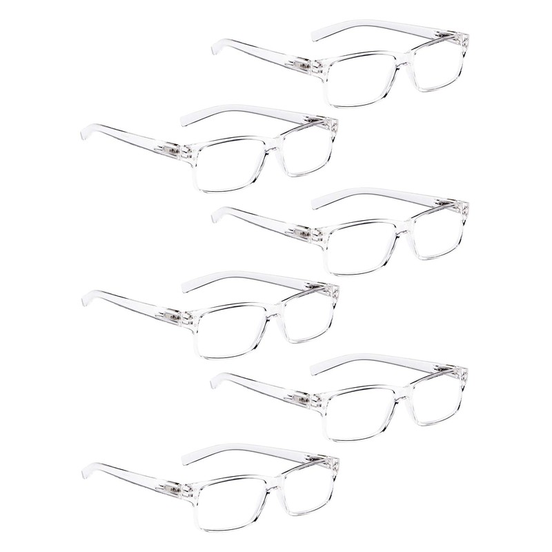 LUR READING GLASSES 6 Pack Spring Hinge Comfort Plastic Readers (Clear)