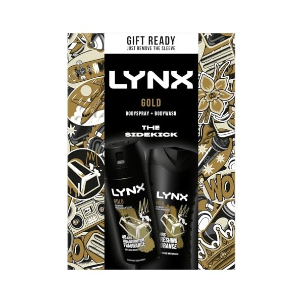 - The LYNX Gold The Sidekick Duo Gift Set includes two gifts for him: LYNX Gold Body Wash 225 ml and Deodorant Body Spray 150 ml
