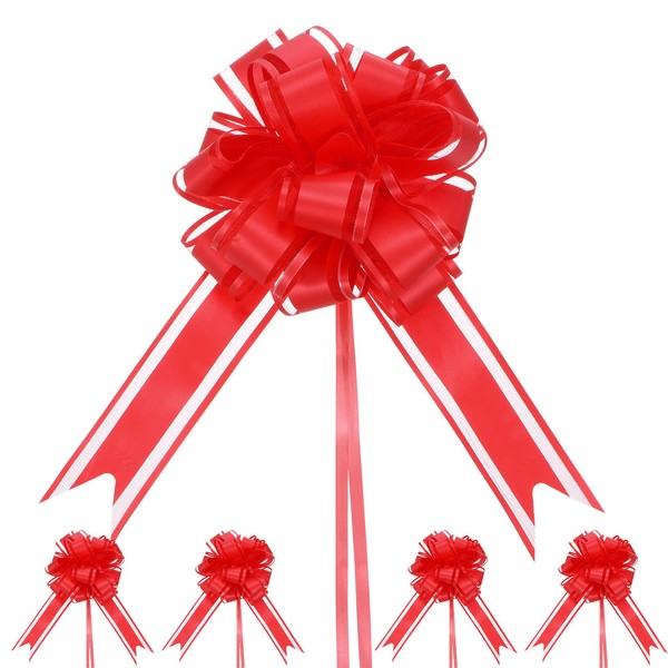 M METERXITY 10-Pack Large Pull Bow, 8 Inch 20cm Reusable Plastic Flower Ribbon Pull Bows Ribbon Bows for Gift Wrapping/Wedding/Baskets Decorations, Satin Pull Bows [Red Gift Bow]