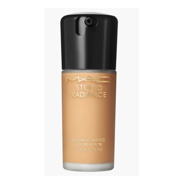 Meet the serum-powered foundation that fuses our expertise of skin tones with the science of skincare. This all-new innovation delivers +209% hydration for plumper, smoother and more radiant skin. Our breakthrough foundation also delivers skin that's more hydrated and healthier-looking over time with all-day radiance. It's powered by 33 skincare ingredients including a 10% hyaluronic acid solution, locking in hydration beneath the skin's surface. It's also infused with a cocktail of powerful skin-caring superfoods, including olive and jojoba oils to condition skin for a healthier-looking glow, plus antioxidants to protect skin from pollution and blue light. Studio Radiance Serum-Powered Foundation features 24-hour hydration and medium buildable, smoothing coverage that instantly evens out your complexion. This lightweight foundation also blurs the appearance of pores, skin redness, dark spots and dry fine lines. Achieve a customized glow with this foundation's Artist-Curated Radiance Blend, made from silver and gold pearlescent particles specifically crafted to complement unique undertones of light and rich skin. Available in 56 naturally radiant shades for all. The recyclable glass foundation bottle was crafted with sustainability in mind, featuring a cap made with 30% PCR.