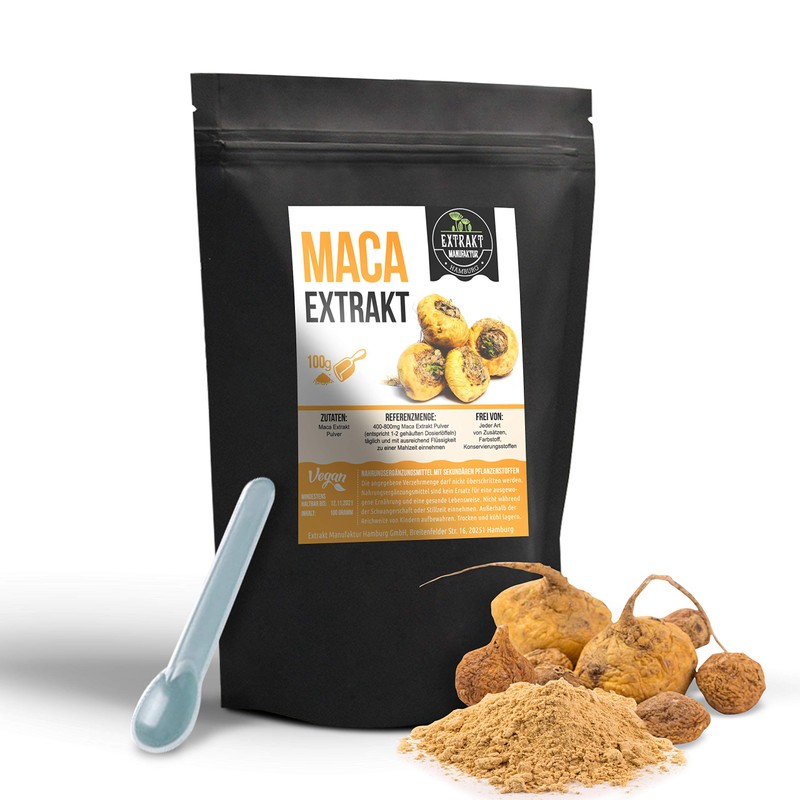 Maca Extract, 100 g Powder, Root Extract, Natural, No Additives, High Dose, Vegan & Bottled in Germany (Powder 100 g)