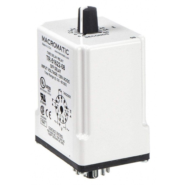 Macromatic TR-51622-08 Time Delay Relay, 120Vac/Dc, 10A, Dpdt