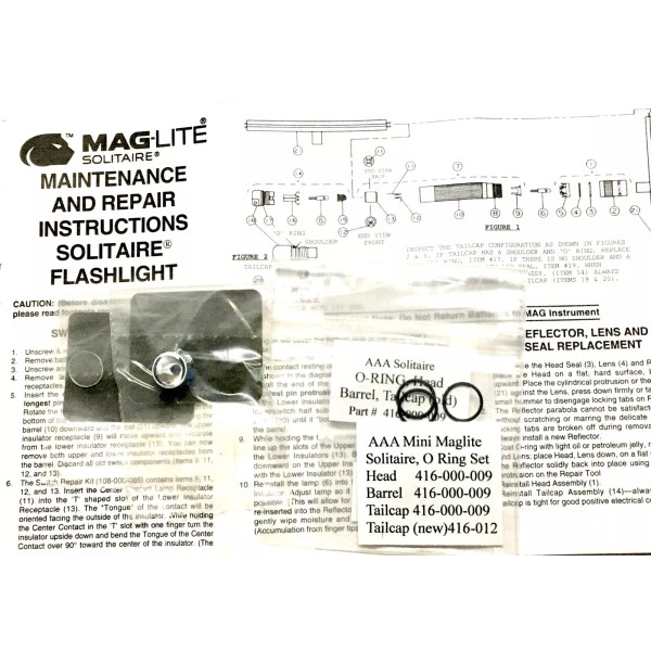 Special installation instructions included. Unique to the AAA Solitaire Mini Maglite Flashlight the process of replacing the Lens, Reflector, or Head O-ring requires the Lens and Reflector to be forcefully press out of the Flashlight Head. This often results in the positioning/ locking tabs on the back of the Reflector being damaged or broken requiring the Reflector's replacement.