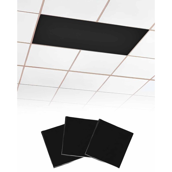 Magnetic Light Cover for Classroom Drop Ceiling,3 Pack 4x2 Ft Fluorescent Light Covers for Office Home Ceiling Light Pure Black Solid Color Lampshade