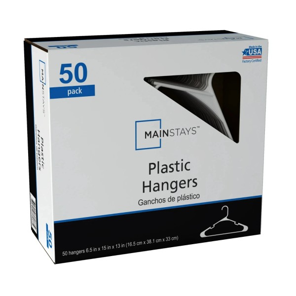 Mainstays Clothing Hangers, 50 Pack, White, Durable Plastic