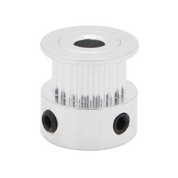 - Aluminium pulley with 16 teeth and a 4 mm bore, suitable for 6 mm timing belts.