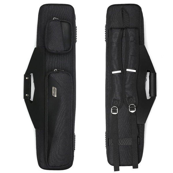 - [CAPACITY]:Length about 83cm,4X4 pool cue carrying case holds 4 butts and 4 shafts,with 2 external pockets for extra billiard accessories.