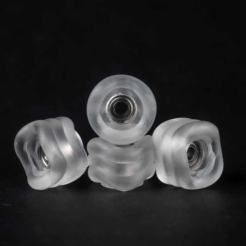 This innovative fingerboard wheel shape is based on the original Shark Wheel, designed by David Patrick from California.Maple Wheels is excited to be able to collaborate with Shark Wheel to bring you, for the first time, this exciting design to the fingerboard community. “Rather than a traditional circular shape, the Shark Wheel is a hybrid of a sphere and cube taking on the properties of both shapes while in motion. It has been touted as the reinvention of the wheel by various news outlets. The wheels appear to be square, but roll smoothly like conventional wheels.” Material: Urethane Durometer: 70D Diameter: 8.7mm Width: 6mm Bearings: ABEC-9, Locked