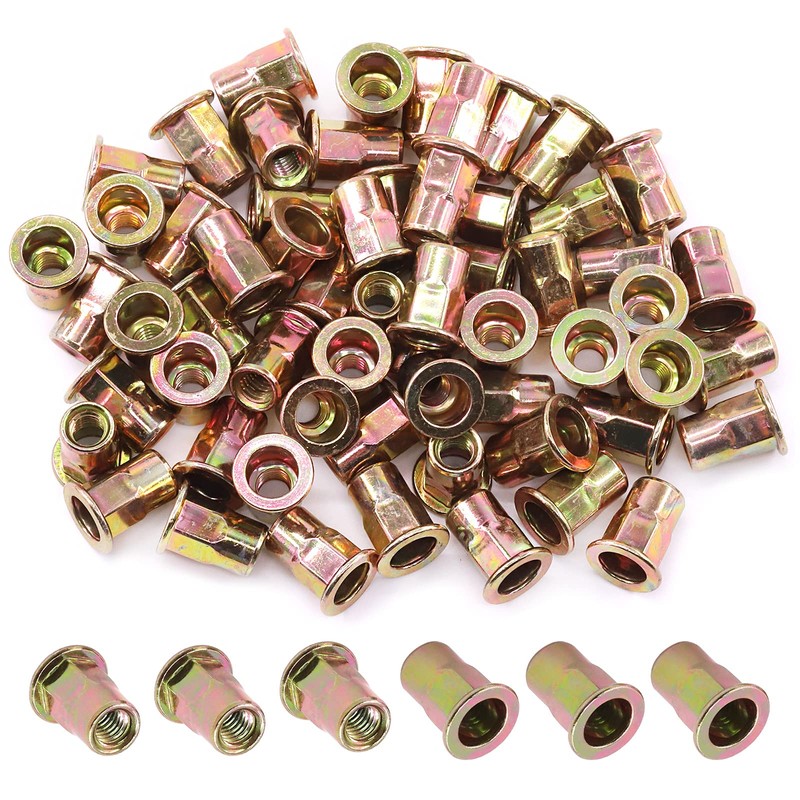 - Excellent Workmanship Our rivet nuts are knurled having flat and deep thread, which are easy to fix and anti slip effective. Each rivet fasteners is treated by electroplating, so that the surface is smooth without any burr.