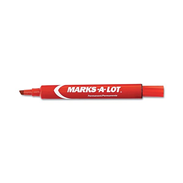 Marks-A-Lot Permanent Marker, Large Chisel Tip, Red, Dozen