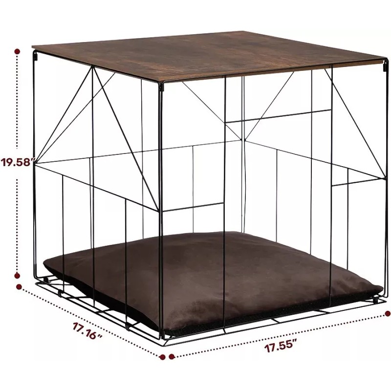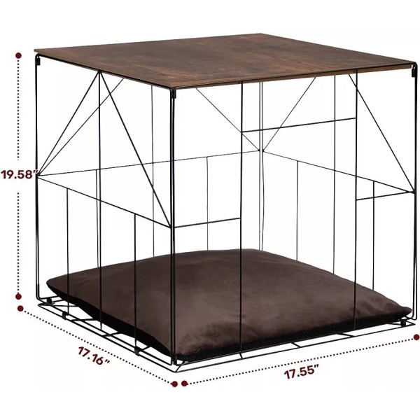 Introducing the Matico Pet Crate Side Table with a stylish wooden top, perfect for pet lovers who want to keep their furry friends close by while keeping their home looking chic. This versatile piece of furniture doubles as a safe and comfortable space for your pet to relax in, while also functioning as a convenient side table for you.