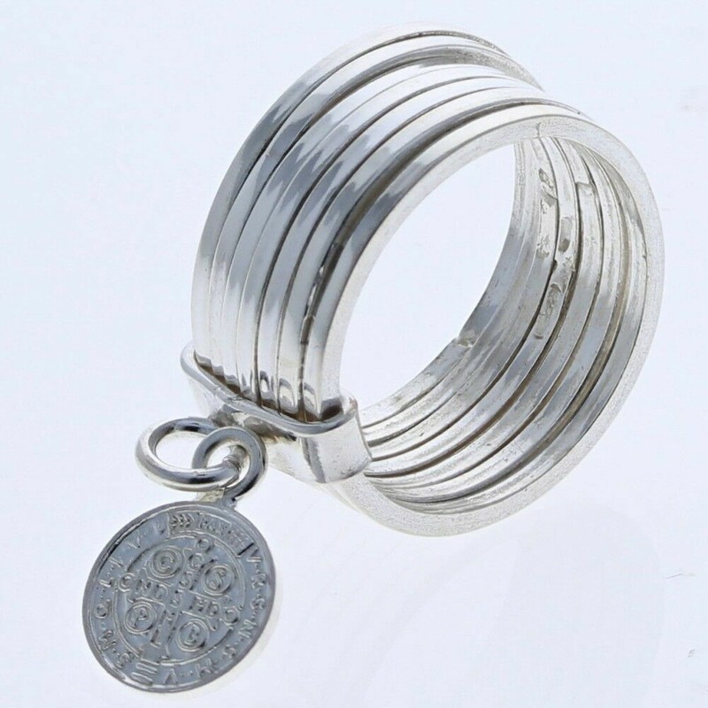 Mayas Gems Size 9- St. Benedict Silver Ring, 925 Sterling Silver, Linked Stack Ring, R12200