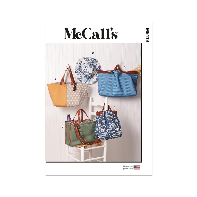 McCall's Tote Bags and Hat Sewing Pattern Kit, Design Code M8419, Multicolor