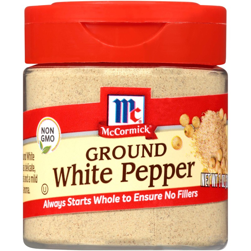 No kitchen should be without the delicate, earthy heat and mild floral aroma of McCormick Ground White Pepper. It is the perfect alternative to black pepper for white or lighter-colored foods like mashed potatoes, cream soups and white sauces. McCormick Ground White Pepper always starts with the whole berries of the pepper vine to ensure that there are no fillers. The berries are picked when ripe and soaked in water to remove the outer husks. The remaining white peppercorn is then dried and ground. Its mild pepper flavor is ideal for seasoning chicken, seafood and pasta. The subtle heat of white pepper is preferred in Asian cuisine, where it is added to stir-fries, marinades and soups, like Hot & Sour Soup.