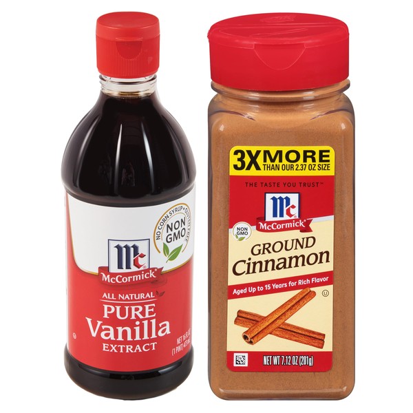 • Includes one each: Pure Vanilla Extract (16 fl. oz.) and Ground Cinnamon (7.12 oz.)