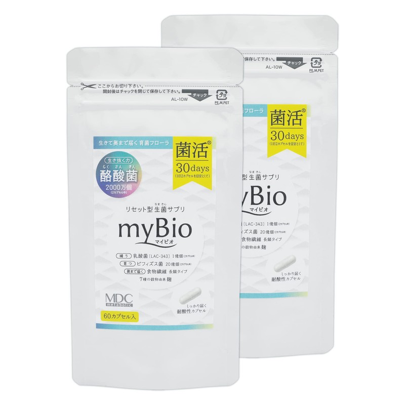 MDCメタボリック マイビオ 菌活サプリ (60カプセル×2袋) お徳用 生菌 (乳酸菌/ビフィズス菌/酪酸菌) 食物繊維 穀物麹 フローラ (菌活/生菌サプリ) myBio
