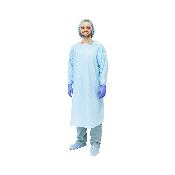 MediChoice Protective Gowns, Open Back, Thumb Loop Cuff, Extra Large, Blue (Box of 15)