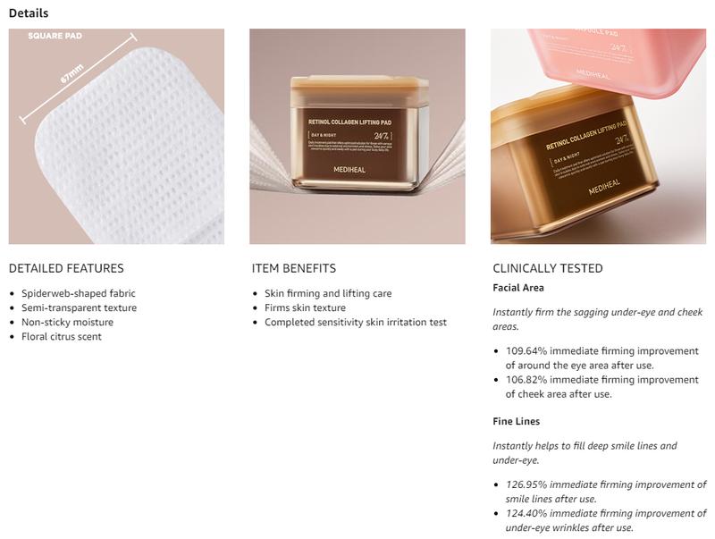 - ADVANED FORMULA WITH RETINOL: Mediheal Retinol Collagen Lifting Pad contains 99% Pure retinol and 300 dalton low-molecular collagen to help lifted and rejuvenated appearance.