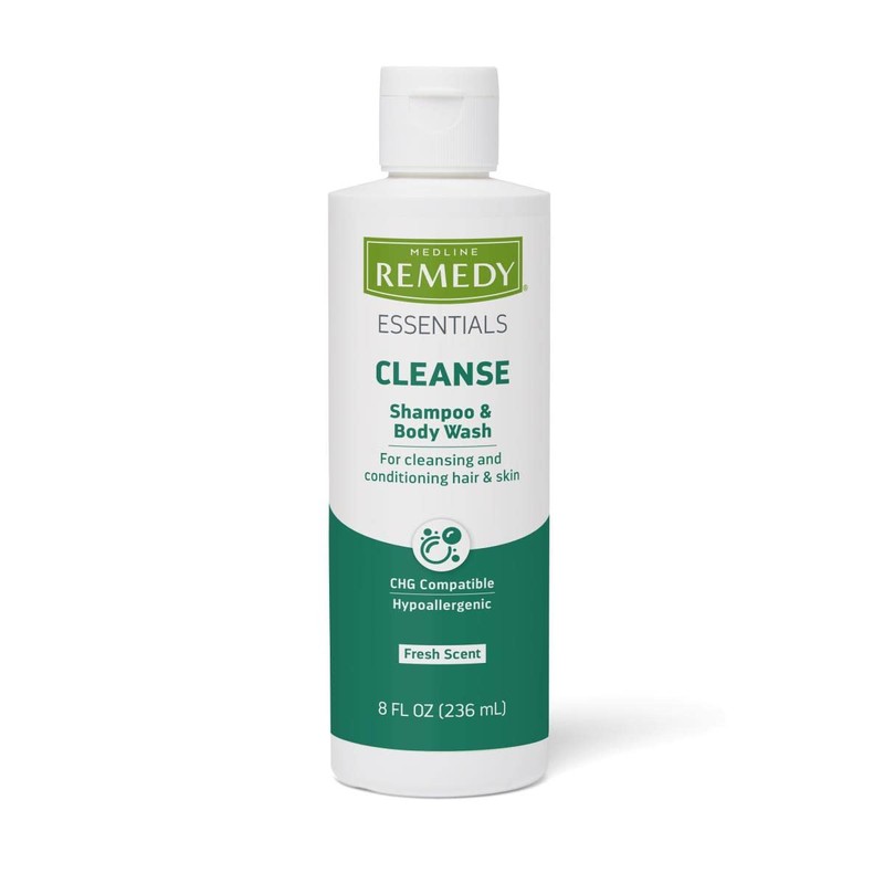 • Medline Remedy Essentials shampoo and body wash is gentle, pH-balanced and dye-free for everyday use