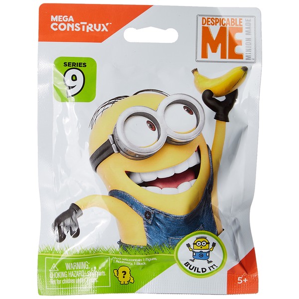 Includes 1 Figure. Everyone’s favorite Minions are about to unleash some major chaos with the Mega Bloks Despicable Me Buildable Minions Blind Packs Series 9. Build your own loyal following and collect twelve popular Minion characters, each with their own special accessory and unique theme. They come in a blind pack, so you never know which one you will get. You can customize your Minions and mix and match overalls, goggles, accessories, even arms and feet! Ideal for ages 5 and up.