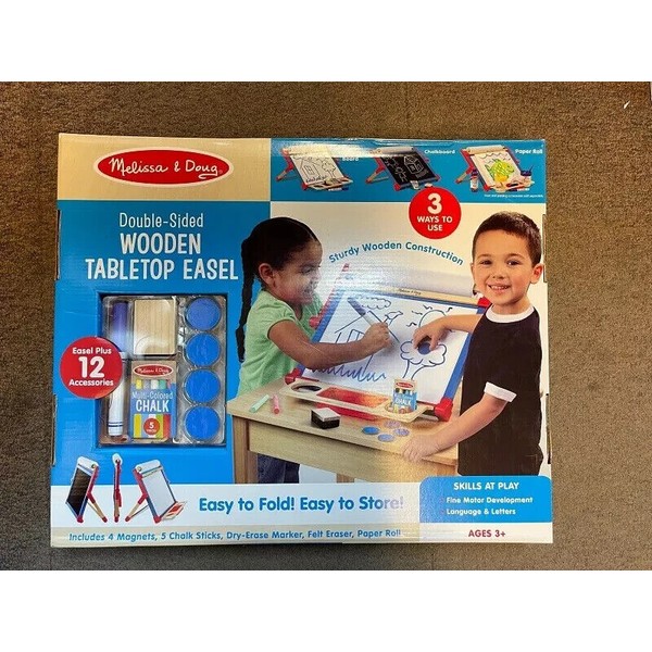 MELISSA & DOUG DOUBLE-SIDED WOODEN TABLETOP EASEL *DISTRESSED PKG