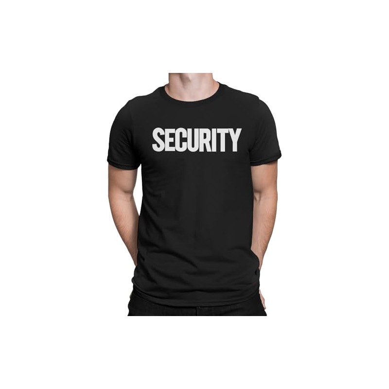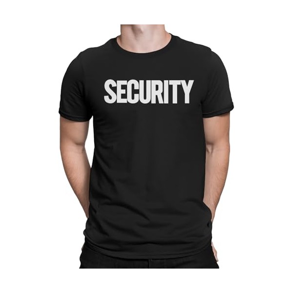 Men's Security T-Shirt Screen-Printed Front & Back (Black/White, 3XL)