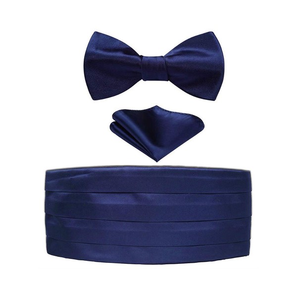 - OCCASIONS - Cummerbunde Men's Dark Blue pair perfectly with a tuxedo or suit. The cummerbund and bow tie set would look elegant and good on many formal occasions, such as everyday life, weddings, proms, dinner parties, shows, dating, etc