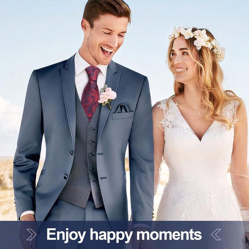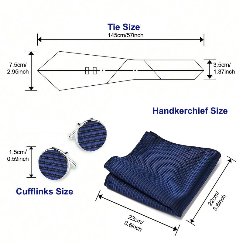【Purchase Contains】1 Necktie+ 1 Matching Pocket Square +1 Pair of Cuff links