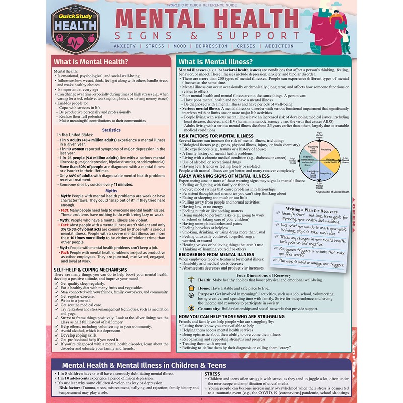 Mental Health - Signs & Support: A Quickstudy Laminated Reference Guide
