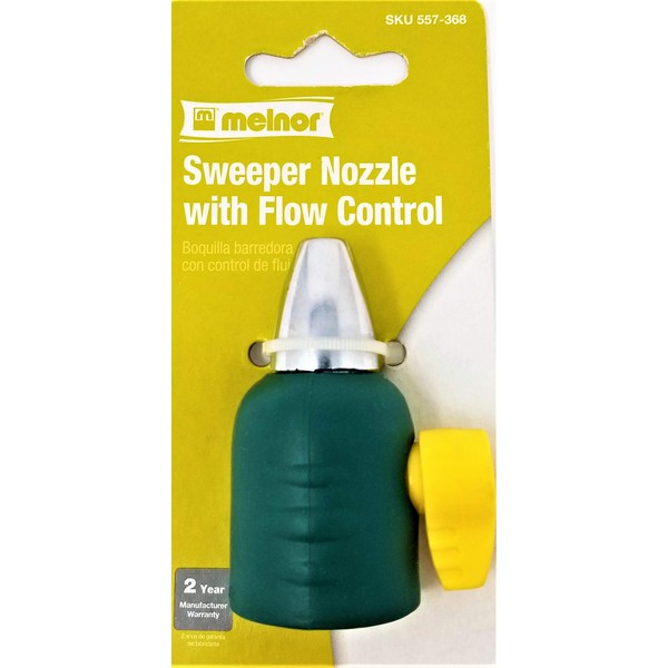 Cleaning paved surfaces or decks is a breeze with a sweeper nozzle. The simple design creates a wide blast of water that clears away dirt and leaves. This classic hose-end tool will last for years to come. Twist nozzle water flow control.
