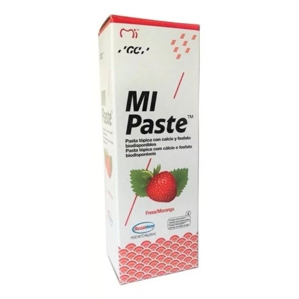 MI Paste Recaldent Sabor Fresa 40gr es una crema dental a base de agua que contiene RECALDENT (CPP-ACP: Casein Phosphopeptide-Amorphous Calcium Phosphate), un ingrediente remineralizante que ayuda a fortalecer el esmalte dental. Este producto viene en un tubo de 40 gramos (35 mL) y tiene un delicioso sabor a fresa, ideal para quienes buscan una experiencia de cepillado agradable. Es importante destacar que MI Paste es libre de gluten, lo que lo hace apto para personas con intolerancia al gluten. Aunque no es una marca destacada ni infantil, su condición es completamente nueva y cuenta con un formato de pasta de dientes en crema. Además, el producto se vende en packs individuales y tiene una fecha de vencimiento claramente indicada para garantizar su frescura y efectividad.