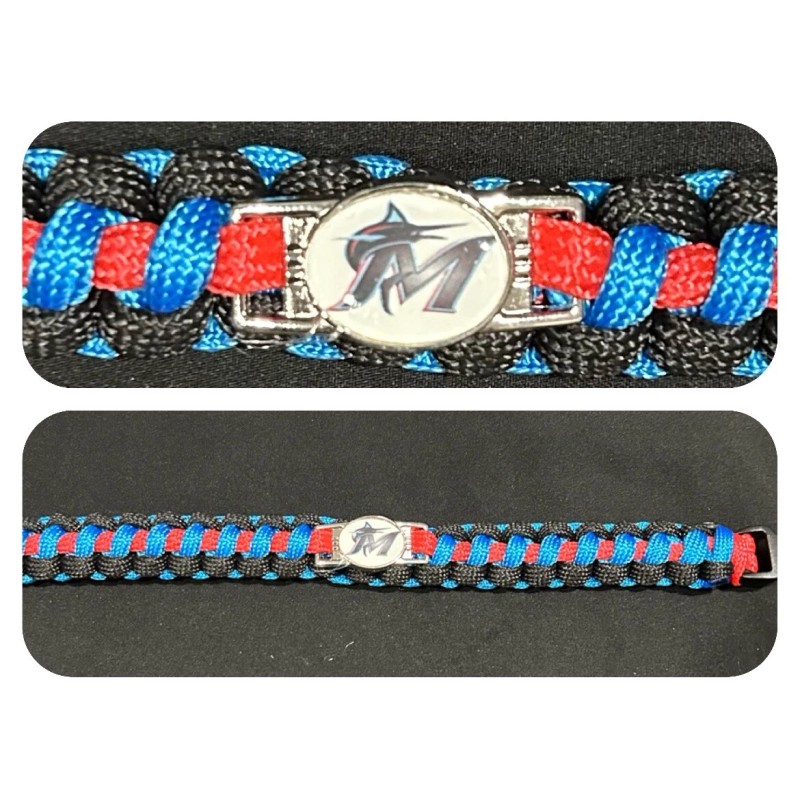 Show off your love for the Miami Marlins with this stylish paracord/survival bracelet. Made with high-quality materials, this bracelet features the team's colors and logo, making it the perfect accessory for any true fan. The durable design ensures that this bracelet will last for years to come, making it a great investment for any Miami Marlins supporter.