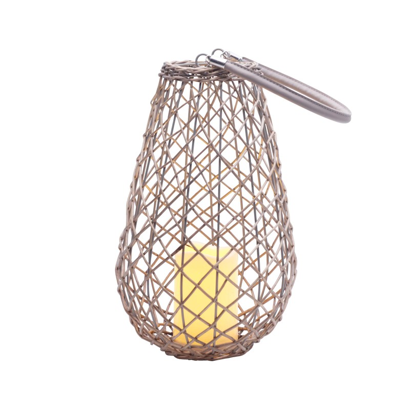 - BEAUTIFULLY MADE: made of Rattan with a faux leather handle and a plastic LED pillar candle inside